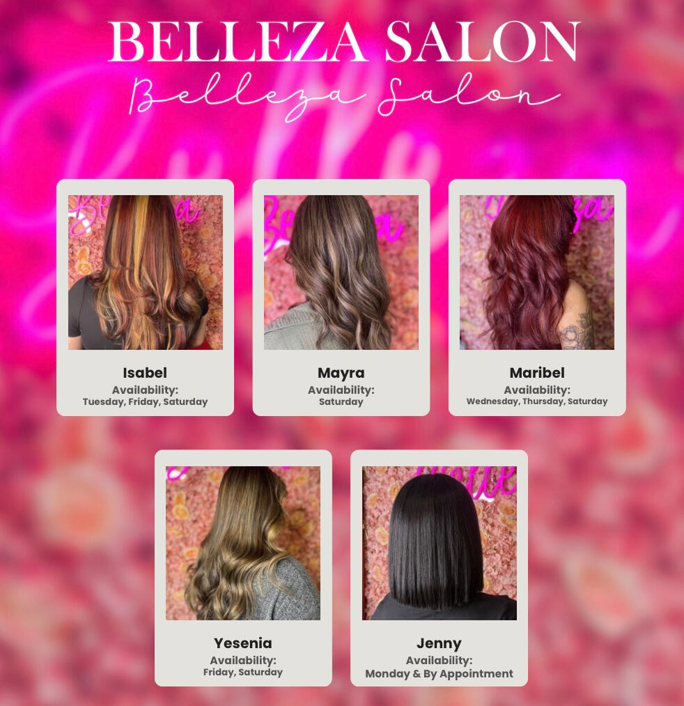 β¨ CHECK OUT OUR BELLEZA STYLIST'S AVAILABILITY AND WORKβ¨
